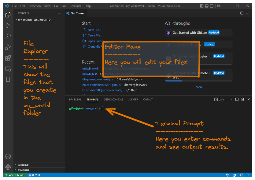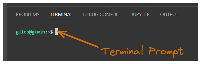 From this point on all commands typed in the console and chosen from VSCode menus should be the same for Windows, Linux and MacOS. This is because you now have a bash shell for typing commands.