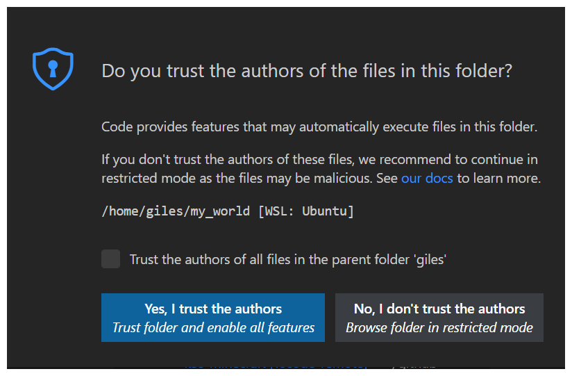 We are going to use ‘Windows Subsystem for Linux 2’ or WSL2. Go here first to get VSCode connected to WSL2: Windows Subsystem for Linux