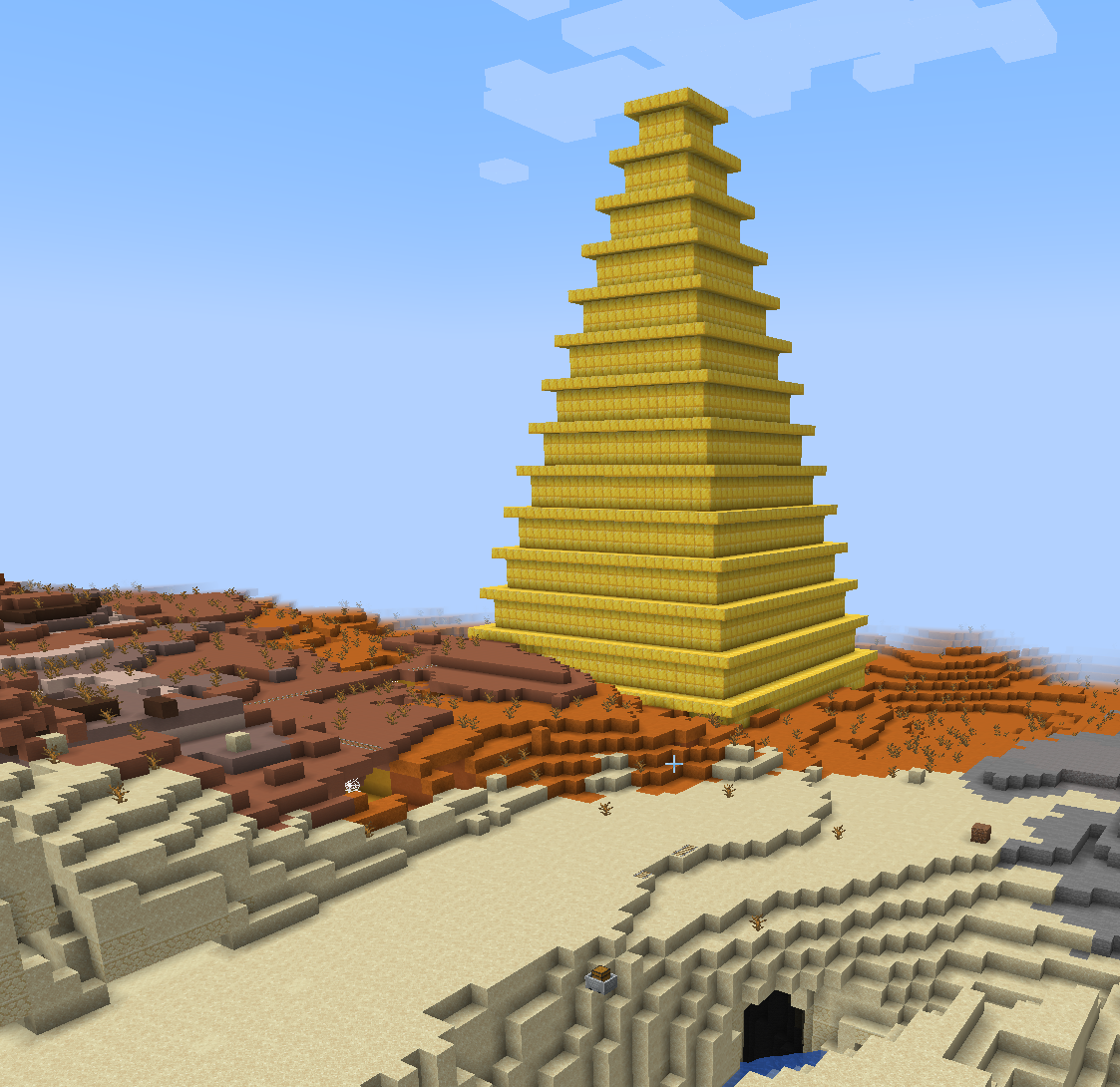 You could now do a backup of the world and experiment with building pagodas of different sizes and materials. Then restore your world after you are done experimenting.